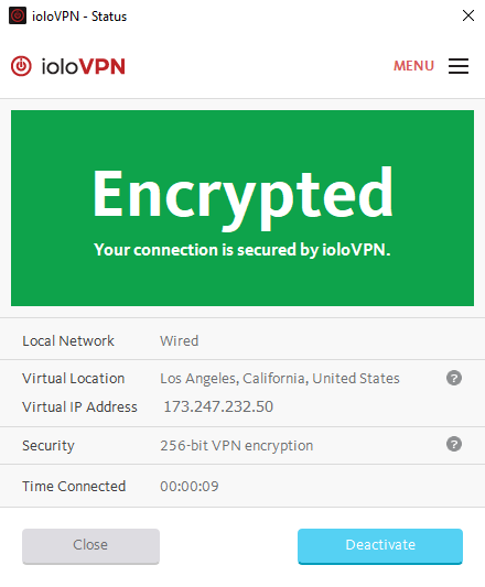 When you activate ioloVPN, it quickly builds this encrypted tunnel through your Internet connection to one of our secure Internet gateways. All Internet data between you and ioloVPN is now encrypted, and no one can view your information, including your Internet Service Provider. Further, your protection and privacy is not limited to just browsing. ioloVPN encrypts all your Internet data to and from our gateways, including web browsing, instant messaging, streaming, VoIP and email.