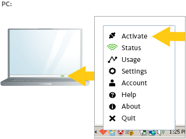 You can manually activate ioloVPN if it is not set up to automatically activate when you open a browser window. Note that ioloVPN must be loaded for it to be activated. If ioloVPN has been loaded, one of three icons will appear in your system tray: