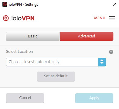 Note: We have many servers located throughout the world. ioloVPN assigns these servers automatically, but you can use this menu to choose a different location if you wish.